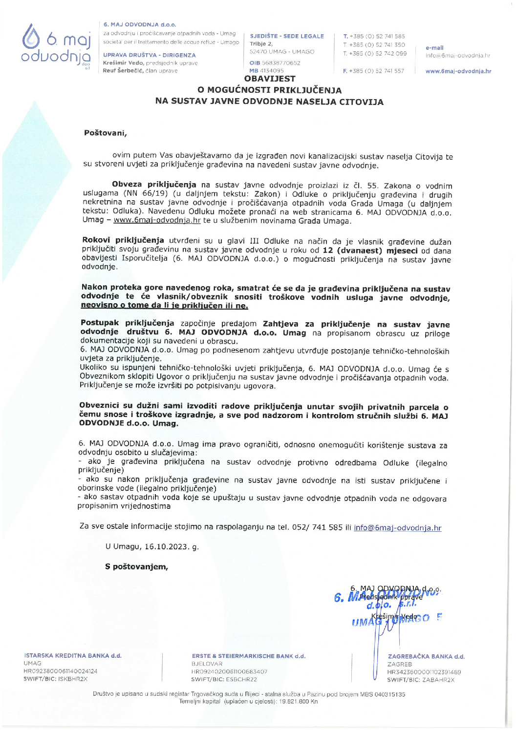 Obavijest o mogućnosti priključenja na sustav javne odvodnje naselja Citovija Obavijest o mogućnosti priključenja na sustav javne odvodnje naselja Citovija swebart2023-10-16T10:10:53+02:0016/10/2023| Pročitaj više